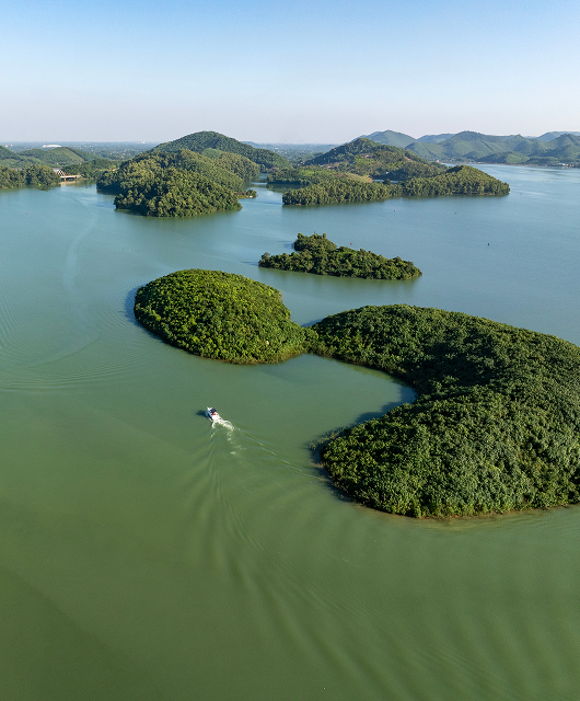 Đắm mình trong hành trình du ngoạn giữa vịnh hồ ngoạn mục, nơi 108 hòn đảo tạo nên bức tranh thiên nhiên sống động. Từ boong những chiếc du thuyền sang trọng, từng góc nhìn mở ra một khung cảnh khác biệt – khi mặt nước, rặng núi và bầu trời hòa vào nhau thành một đường chân trời không điểm dứt.
