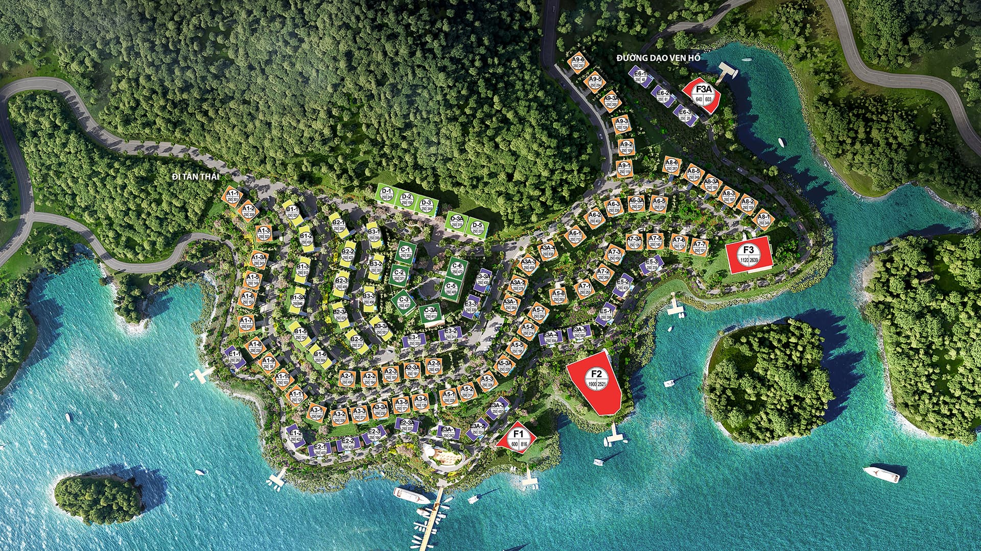Flamingo Maison 108 trải rộng trên triền đồi thoải, nơi địa thế tự nhiên được tôn trọng và phát huy tối đa để tạo nên một tổng thể xếp tầng tinh tế. Từng lớp biệt thự được đặt để khéo léo, theo thế đất đổ nhẹ về phía hồ, đảm bảo tầm view panorama cho từng căn biệt thự.